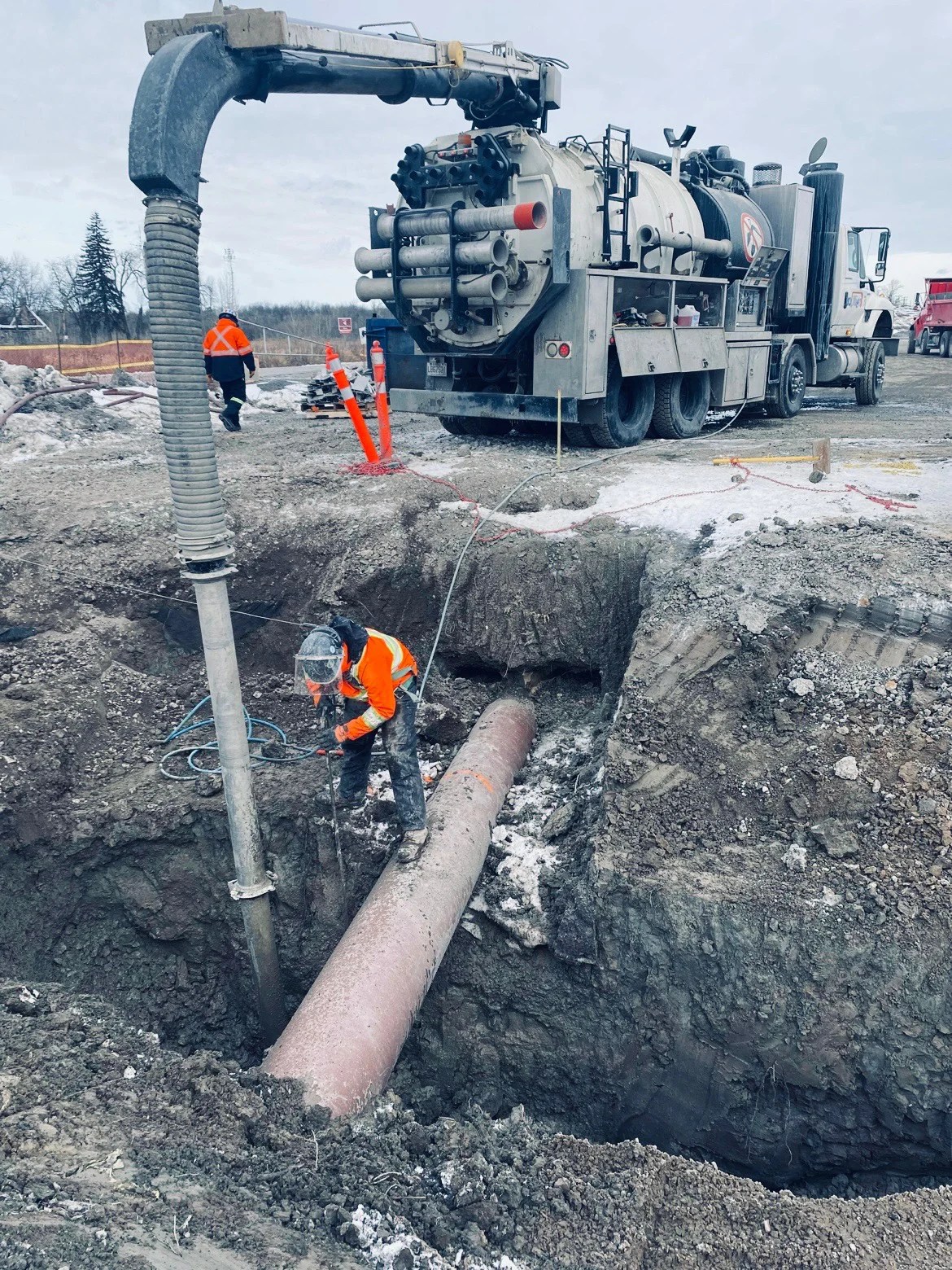 Notre équipe spécialisée en hydro-excavation a eu la chance de collaborer sur de nombreux projets d’excavation, de nettoyage de drains et de pompage. Ces travaux ont eu lieu partout au Québec, mais principalement en Estrie, en Montérégie, dans les Laurentides, à Laval ou encore sur l’île de Montréal! Nous intervenons au moment opportun pour assurer la continuité de votre projet.